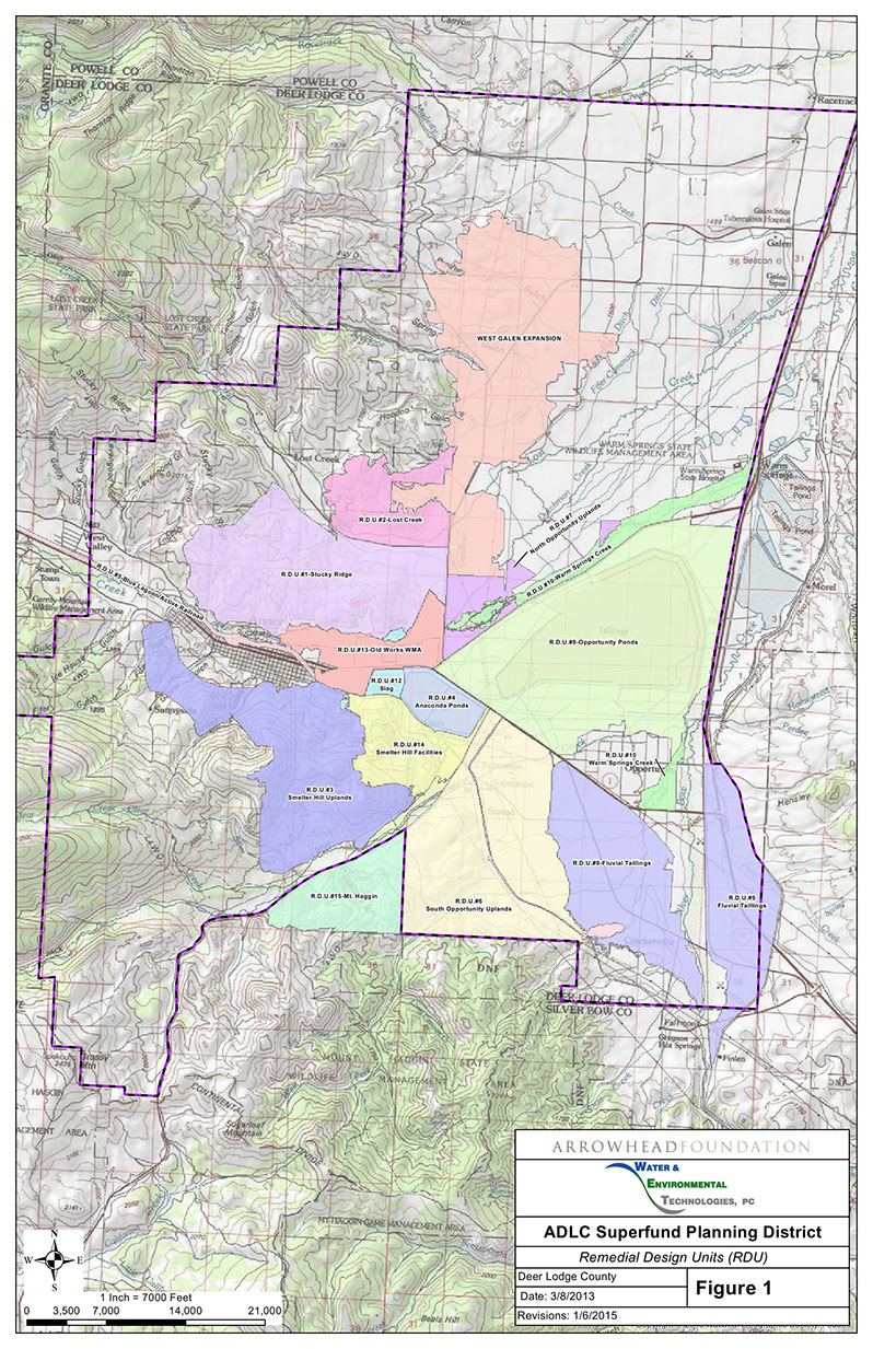 The Operable Units (OU) and associated Remedial Design Unites (RDU) within the Anaconda Smelter NPL site include: